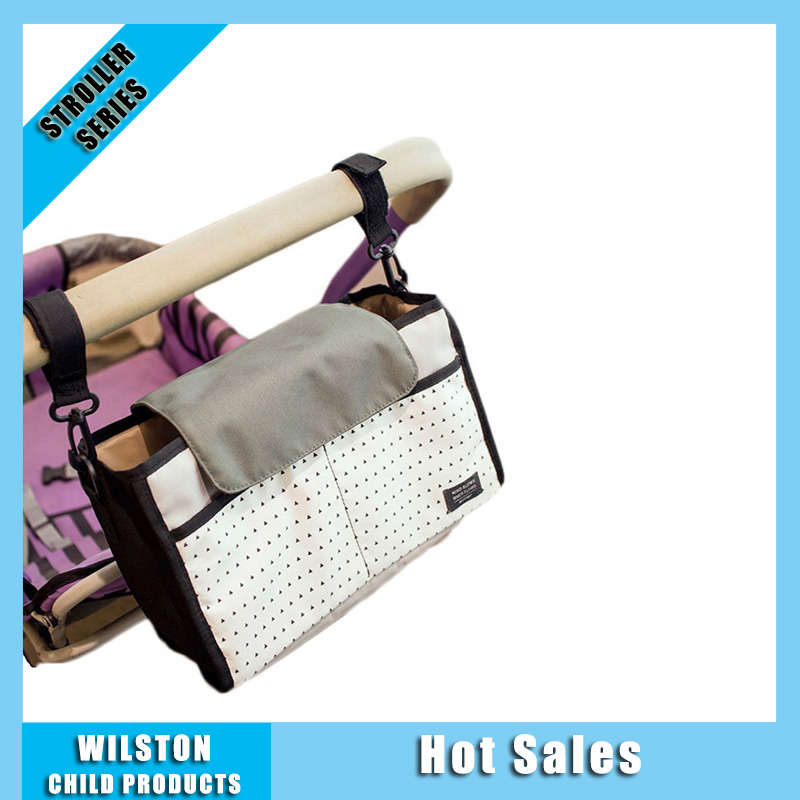Cationic fabric stroller bag, multi-functional partition design, to achieve wet and dry separation, bottles, diapers, mother's belongings and cell phones can be easily stowed.